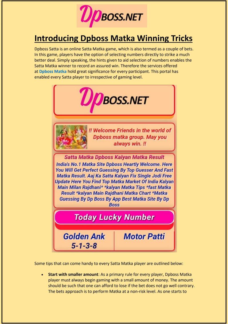 Dpboss Satta Matka Result